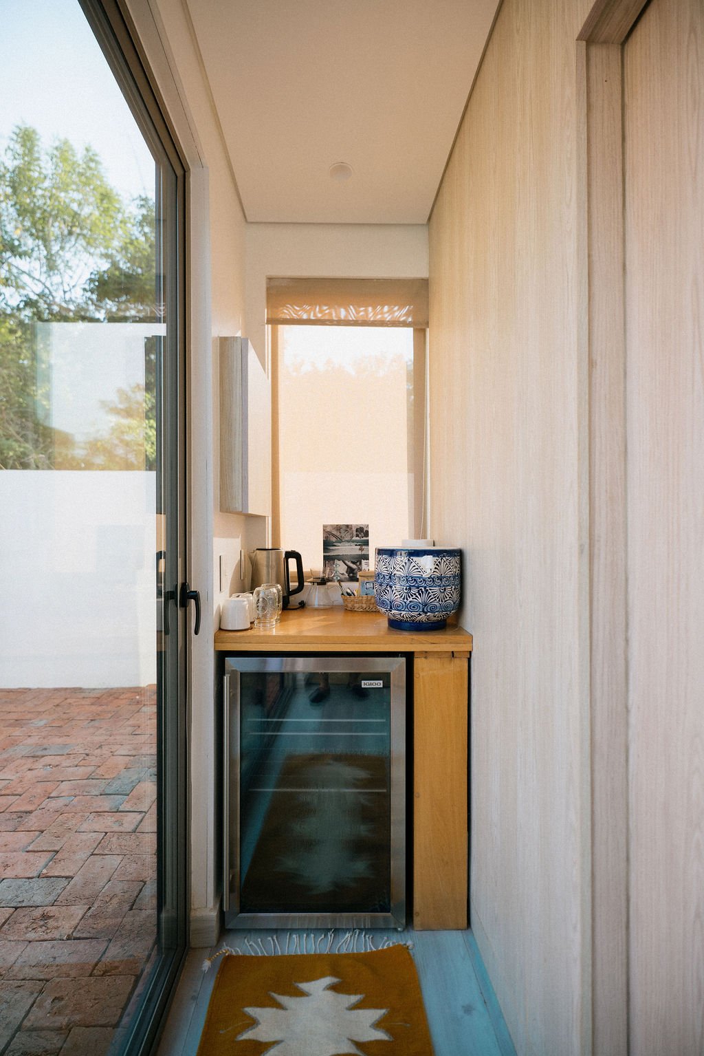 Simple, efficient rooms made for surf trips and focused rest. Each one includes a mini fridge and coffee setup, and you'll have access to the shared kitchen just a short walk away. Everything you need, nothing extra.
